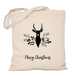 Torba bawełniana z czarnym nadrukiem renifera i ozdobnych gałązek.