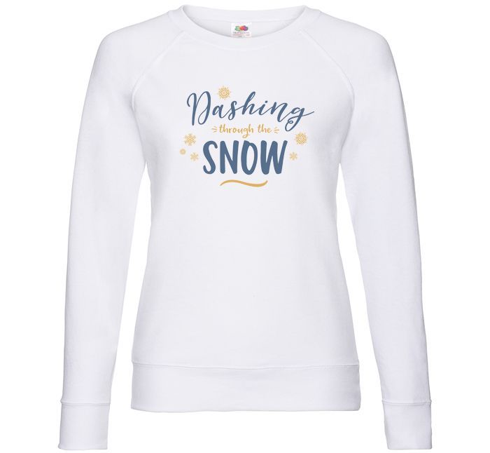 Bluza damska Dashing through the snow to lekka bluza z zabawnym nadrukiem w sam raz na świąteczne przygotowania. Bluza jest bardzo wygodna, ma sportowy charakter i doskonale sprawdzi się w świątecznej zawierusze.