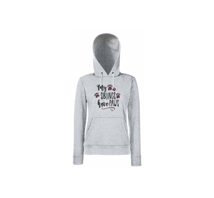 Bluza damska z kapturem My siblings have paws, czyli moje rodzeństwo ma łapki ;). Zabawny napis dla miłośniczek kotków. :)