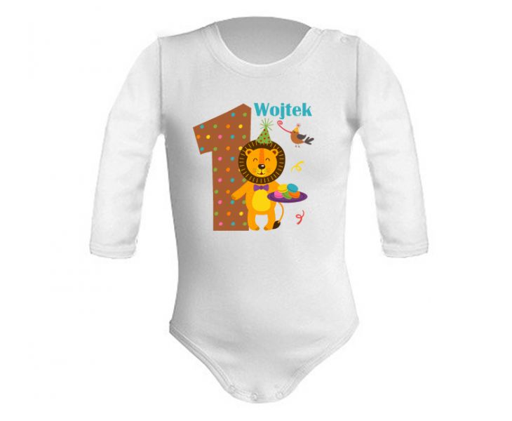 Urodzinowe body na roczek dla chłopca z imieniem i lwem jest świetną alternatywą do formalnego stroju. To wygodna i bardziej casualowa wersja urodzinowego ubranka na roczek. Stawiając komfort dziecka na pierwszym miejscu taki strój jest najlepszym wyborem.