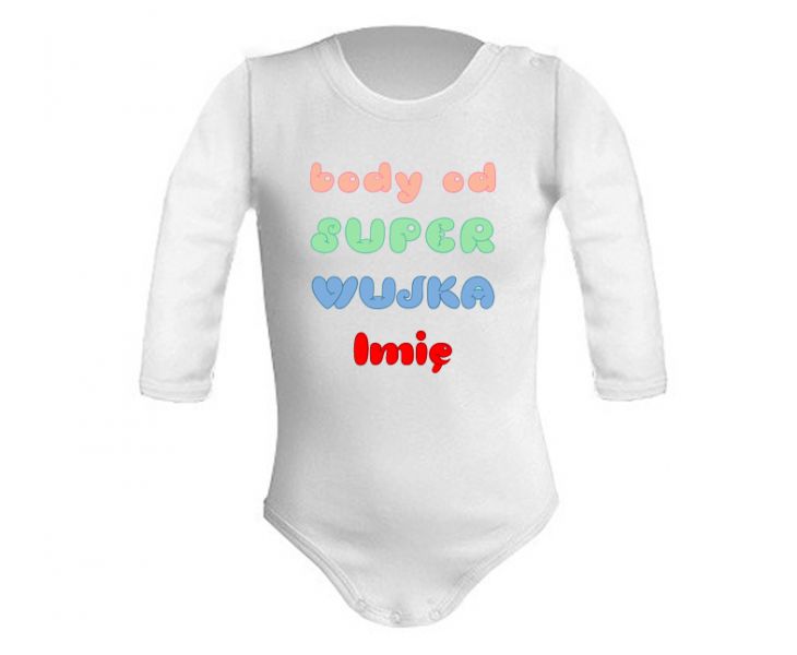 Body od wujka dla niemowlęcia. Ładne body z klorowymi napisami. Wujek to fajny gość, a taki co daje prezenty jeszcze bardziej. To wyjątkowy upominek.