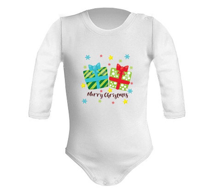 Dziecko może je nosić przez cały zimowy okres, gdyż posiada wspaniały motyw, który świetnie odzwierciedla jego ideę. Body z wesołymi i śmiesznymi prezentami zostało uszyte z materiałów, które zapewniają bezpieczeństwo dla wrażliwej skóry dziecka. Posiada ono również bardzo ciekawe zdobienia, którymi są kolorowe gwiazdki oraz śnieżynki. Białe dziecięce body to idealna propozycja na świąteczny, jak i również zimowy czas. Jest ono bardzo urokliwe, dlatego też spodoba się wszystkim rodzicom oraz ich pociechą.