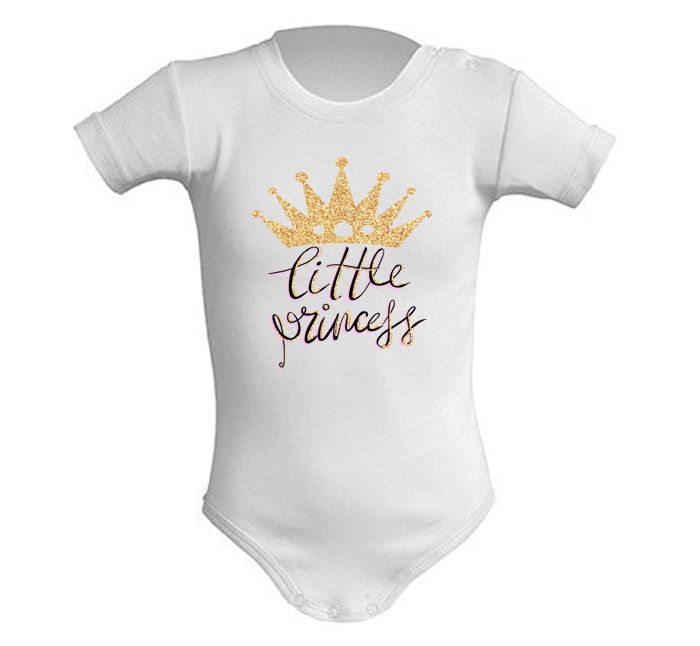 Body Little princess dla dziewczynki. Fantazyjne litery złoto-różowe nad którymi jest korona idealnie się komponują w całość.