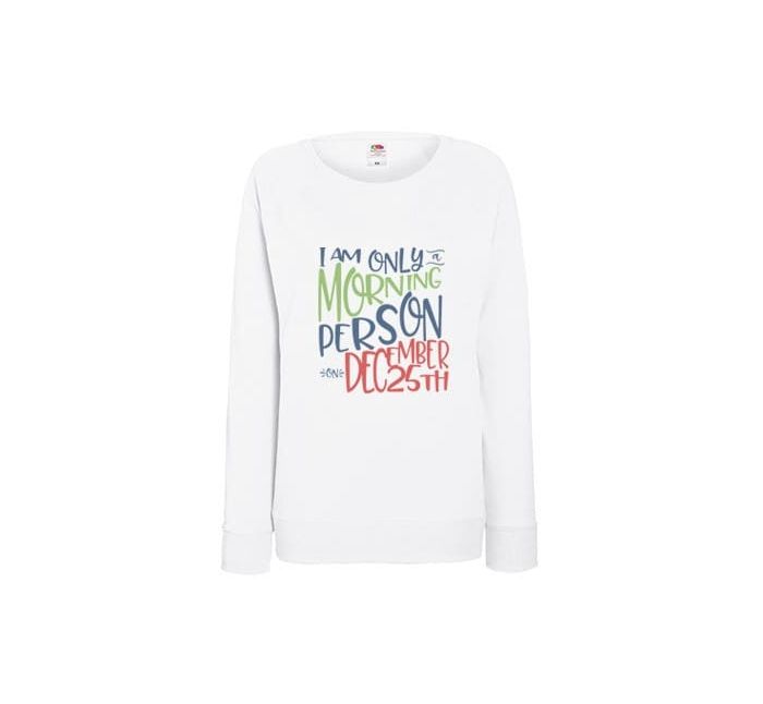 Bluza damska I am only morning person on December 25th wyraża sympatyczną prawdę o śpiochach. :) Świąteczny nastrój czyni cuda.