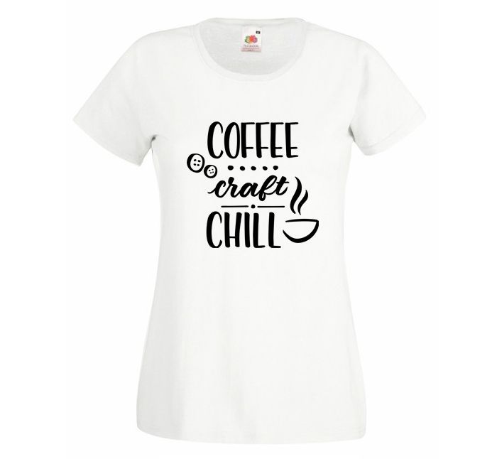 Koszulka damska Coffee craft chill dla kochających kawę i rękodzieło. W przerwie szycia czy dziergania miło jest sobie zrobić przerwę na kawkę.