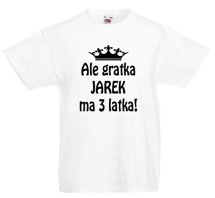 Koszulka Ale gratka ma 3 latka z dowolnym imieniem dziecka.