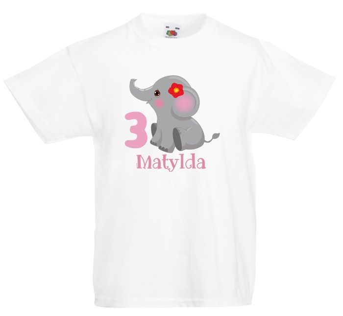 Koszulka na 3 latka z imieniem i słoniem z okazji trzecich urodzin dziecka.