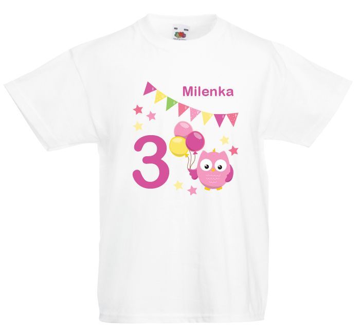 Koszulka trzy latka urodzinowe sówki z imieniem na urodziny. Podaj imię w zakładce "Personalizuj"