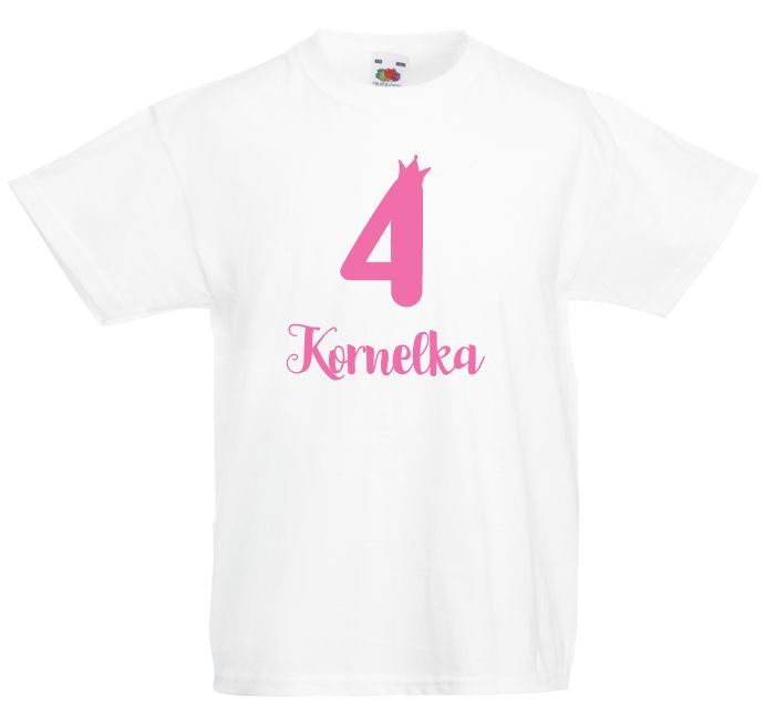 Koszulka na 4 latka z imieniem z okazji czwartych urodzin dziecka.
