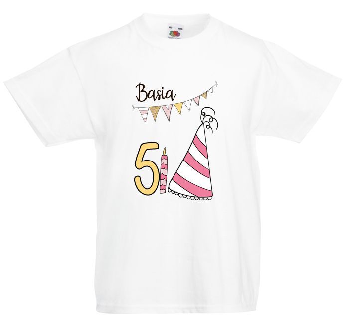 Koszulka urodzinowa z imieniem dla dziecka na piąte urodziny.