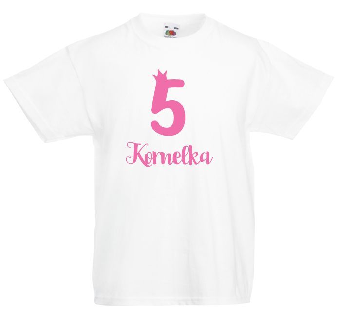Koszulka na 5 lat z imieniem z okazji piątych urodzin dziecka.