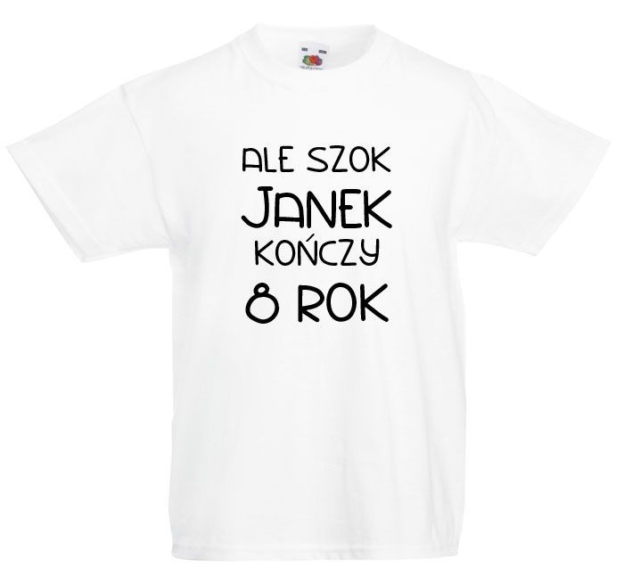 Koszulka Ale szok kończy 8 rok z dowolnym imieniem dziecka.