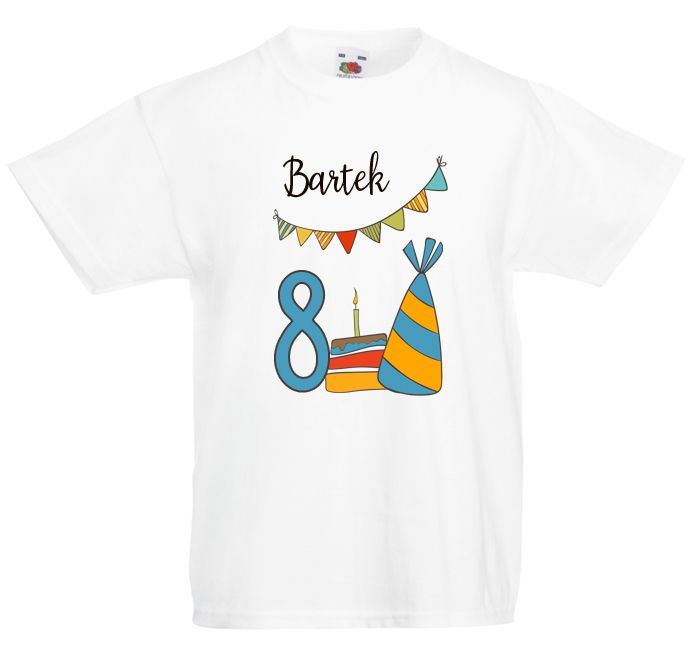 Koszulka urodzinowa z imieniem dla dziecka na ósme urodziny.