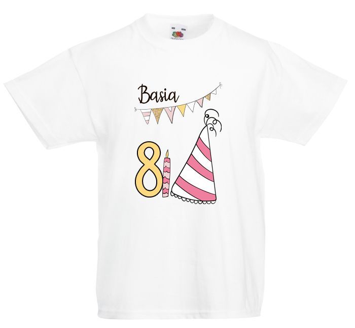 Koszulka urodzinowa z imieniem dla dziecka na ósme urodziny.