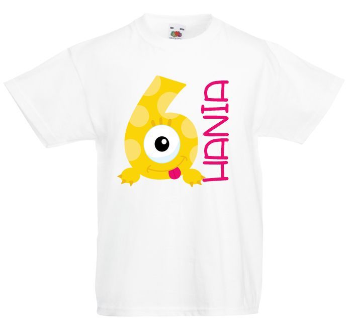 Koszulka dziecięca z imieniem oraz żółtą szóstką z oczami. Szóstka jest dla chłopca i dla dziewczynki. Koszulka na szóste urodziny dziecka. W propozycjach jest kolor biały i różowy. Możesz go zmienić i wybrać ulubiony kolor dziecka. Napisz przy zakupie prośbę o zmianę koloru koszulki.