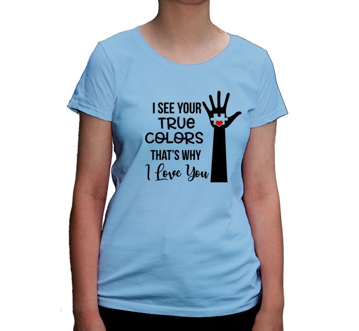 Koszulka damska I see your true colors that's why I love you to kolejna propozycja dla solidaryzujących się z autystycznymi osobami.