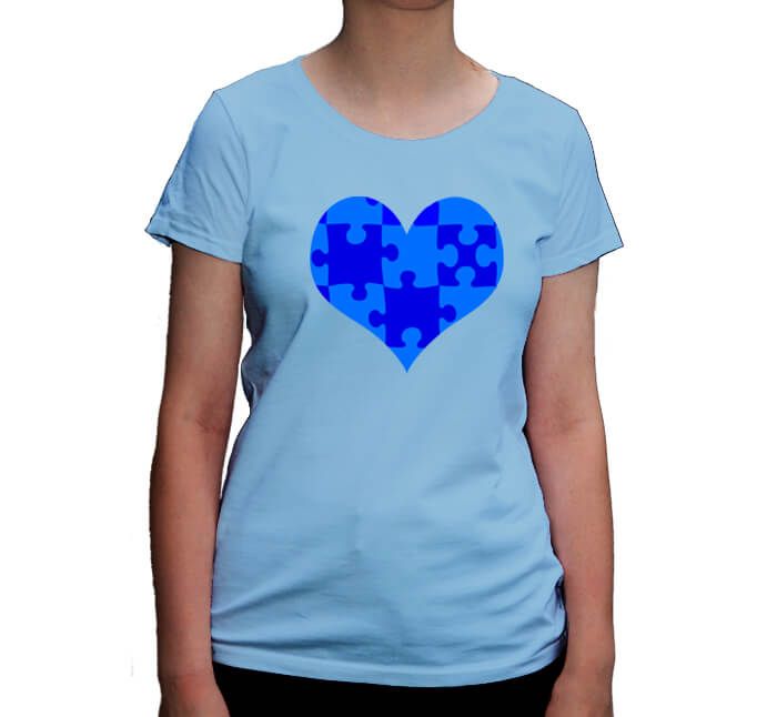 Koszulka Autyzm serce jest gotowa do drogi, ale również do wszelkich modyfikacji. Do tego puzzlowego serca możesz dodać dowolny napis. Wszystko jest utrzymane w niebieskim kolorze.