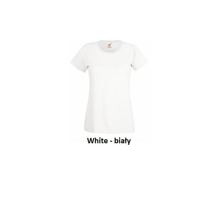 Koszulka damska bawełniana z firmy Fruit of the loom model Lady-Fit Valueweight (61-372-0) wykonana jest w dobrej jakościowo bawełny. Dostępna także w kolekcji męskiej Valueweight (61-036-0) oraz dziecięcej (61-033-0)