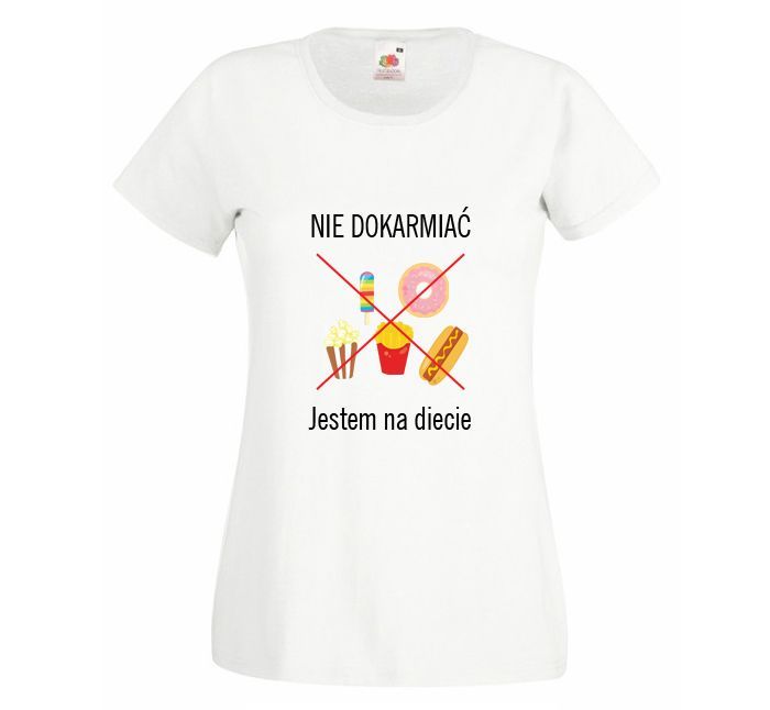 Koszulka Nie dokarmiać jestem na diecie z apetycznym jedzonkiem takim jak lody, pączki, popcorn, frytki oraz hot dogi.