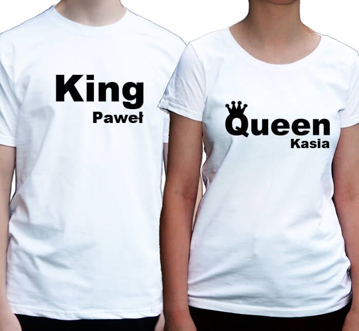 Koszulki dla pary personalizowane imionami King Queen.
