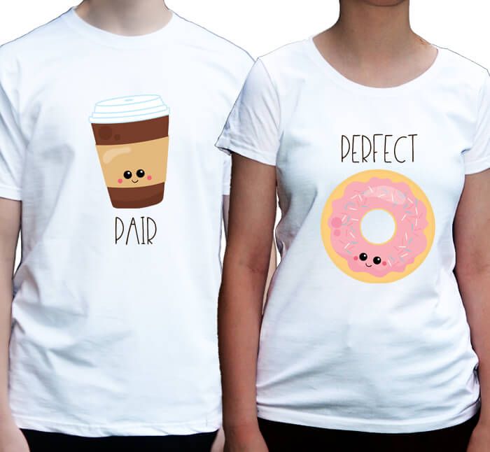 Koszulki dla pary zakochanych lub pary przyjaciół Kawa i Pączek Coffee Donut. Pączek i kawa - słodka para.
