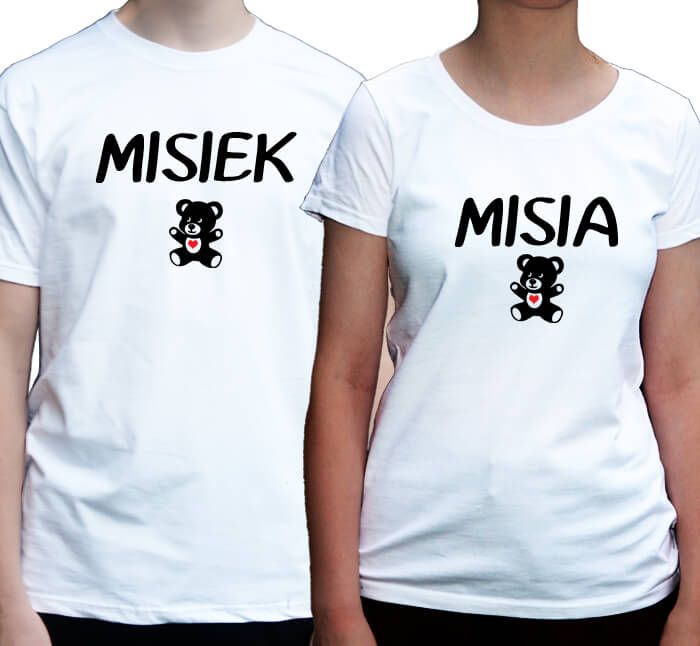 Walentynkowe koszulki dla par z napisami Misiak i Misia.