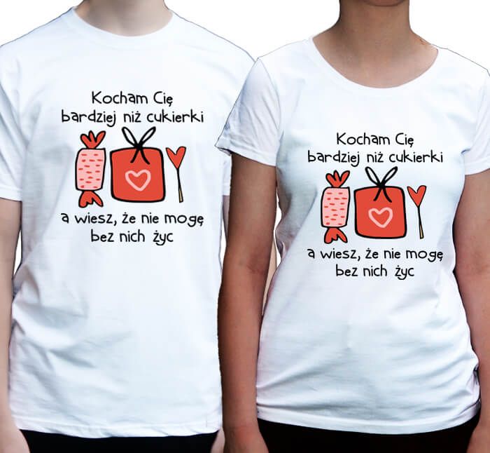 Koszulki dla par Kocham Cię bardziej niż cukierki