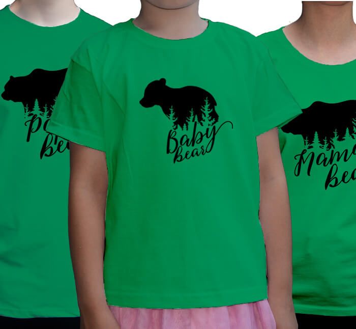 Koszulki rodzinne zielone z niedźwiedziem Miś