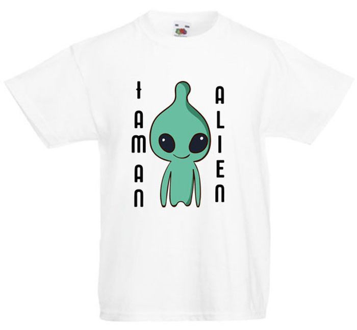 Koszulka dziecięca Alienka z serii "Space Man" przedstawia małego kosmitę albo kosmitkę. Trudno rozpoznać tu płeć, a jak istnieją, to nie wiadomo czy mają płeć. Prawda? A może Ty czujesz się obco jak jakiś Alien?