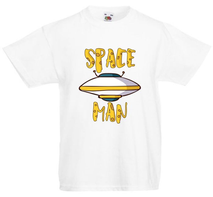 Koszulka dziecięca Space Man z serii "Space Man" przedstawia biało-żółty statek kosmiczny.