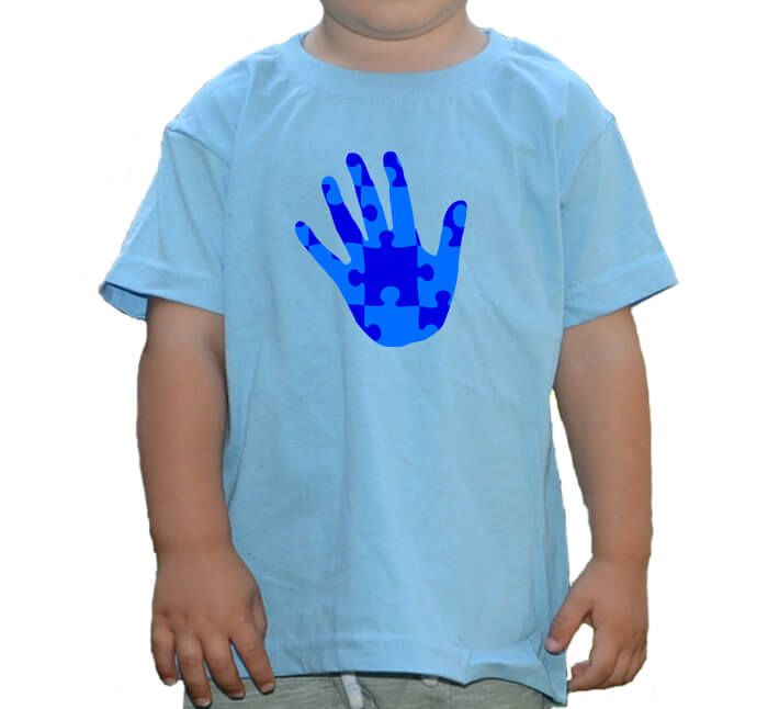Koszulka Autyzm dłoń z puzzli jest gotowa do drogi, ale również do wszelkich modyfikacji. Do tej puzzlowej ręki możesz dodać dowolny napis. Wszystko jest utrzymane w niebieskim kolorze.