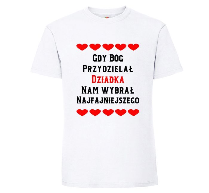 Koszulka Gdy Bóg przydzielał dziadka nam dał najfajniejszego. To jest koszulka od wnuków i wnuczek. Jeśli to tylko od jednej wnuczki czy jednego wnuka, wpisz prośbę o zmianę słowa "nam" na "mi".