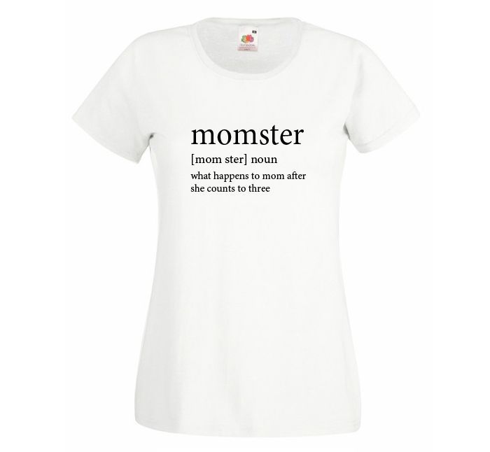 Koszulka Mama Momster przedstawia komizm słowny dwóch słów mom (mam) oraz monster (potwór).
