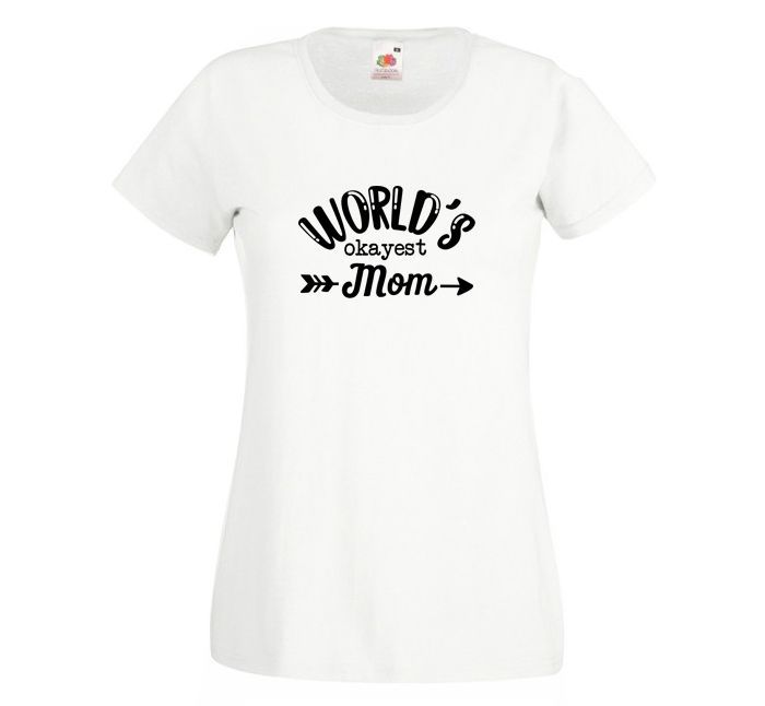 Koszulka dla mamy posiada napis w języku angielskim Najbardziej OK mama na świecie.