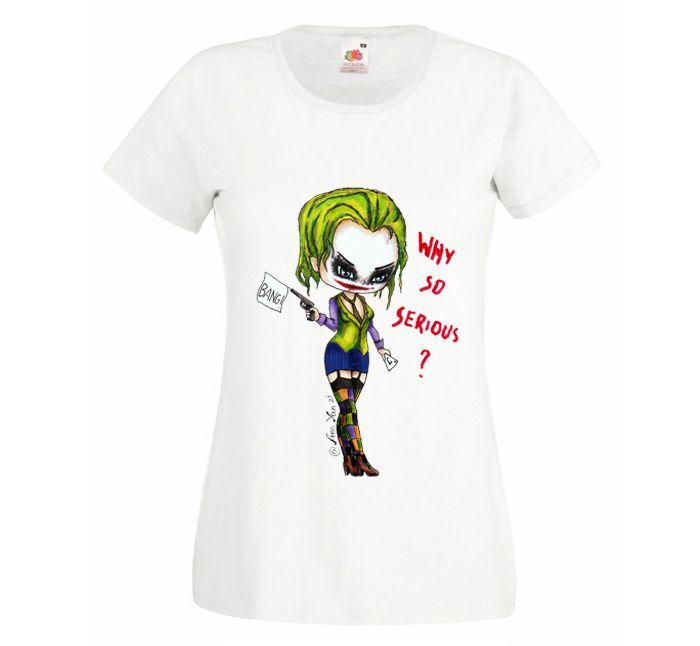 Koszulka damska Why so serious. Czy obchodzisz Halloween czy nie, nie bądź taki poważny i pozwól innym na adrobinę szaleństwa. Tu Anka w wydaniu lekko strasznym. Oj nie chciałbyś spotkać jej na ulicy, bo cechuje jąmocno krwawy humor.