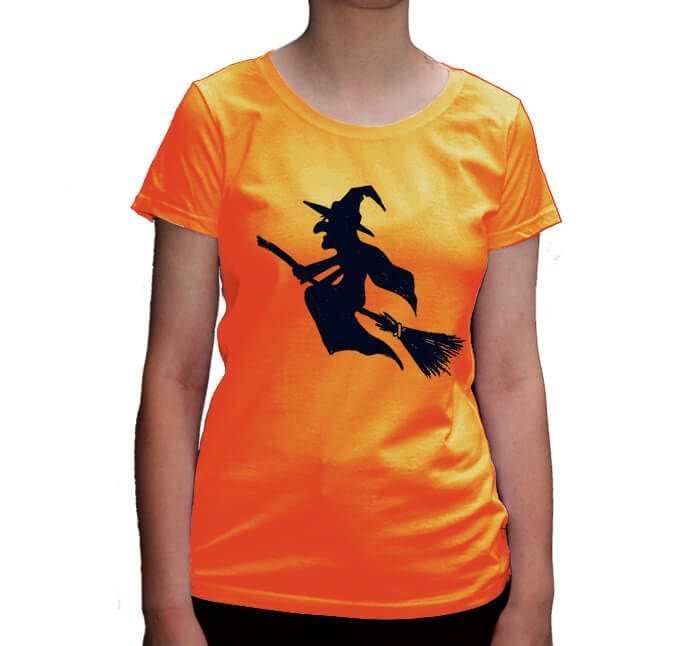 Koszulka damska z czarownica na miotle.
