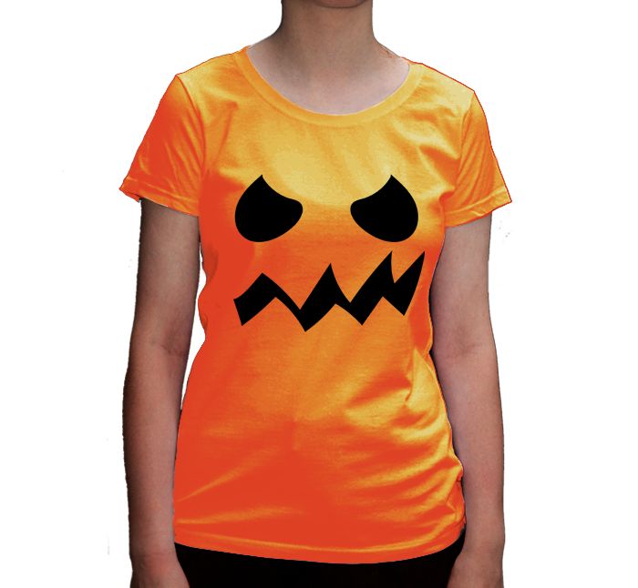 Pomarańczowa koszulka ze straszną buzią dyni.