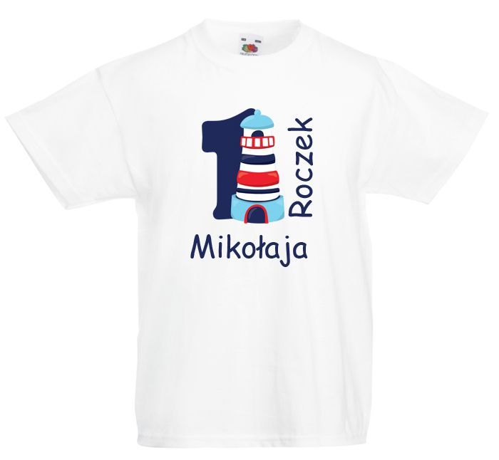 Koszulka dziecięca z imieniem morska Latarnia czeka na ciebie i Twoją przygodę. Roczek to świetny moment aby wybrać sie na Latarnię morską i zoabczyć wielką wodę z góry.