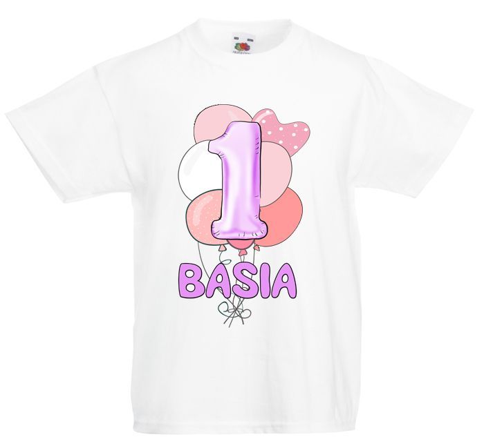 Koszulka na roczek z imieniem i balonami z okazji pierwszych urodzin dziecka.