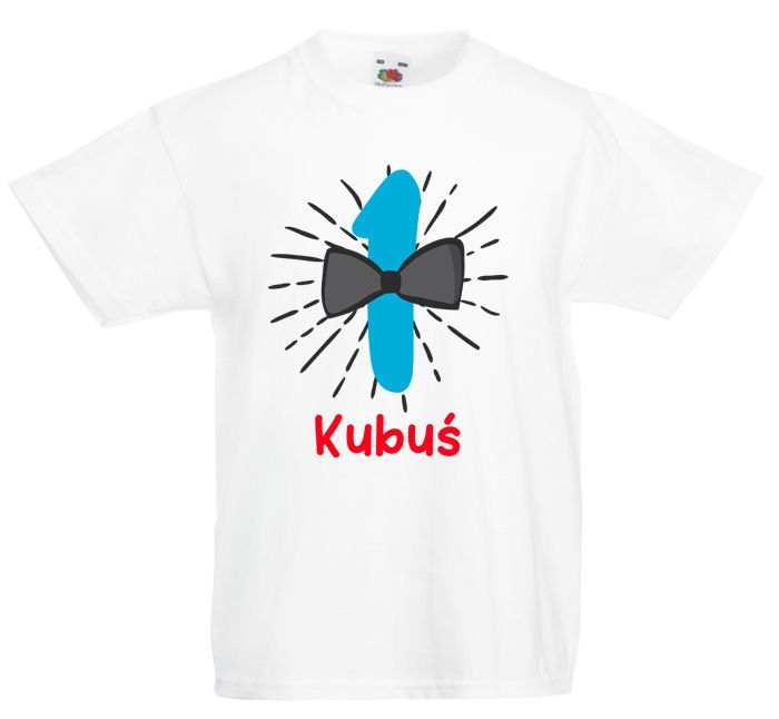 Koszulka na roczek z imieniem i muchą z okazji pierwszych urodzin dziecka.