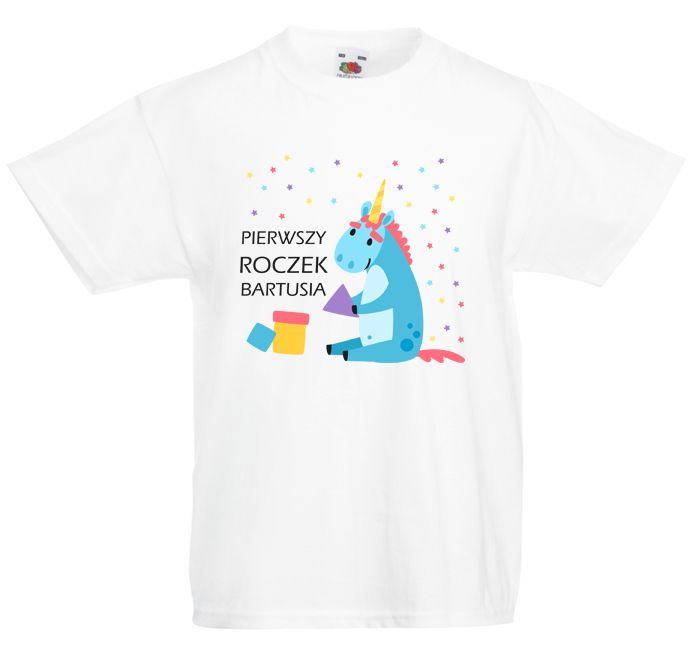 Koszulka na roczek z imieniem i jednorożcem z okazji pierwszych urodzin dziecka.