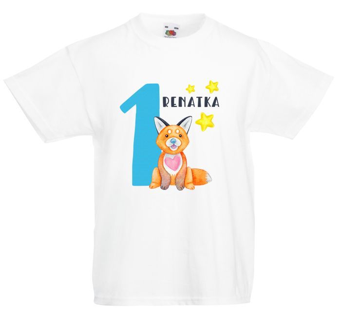 Koszulka na roczek z imieniem i lisem z okazji pierwszych urodzin dziecka.