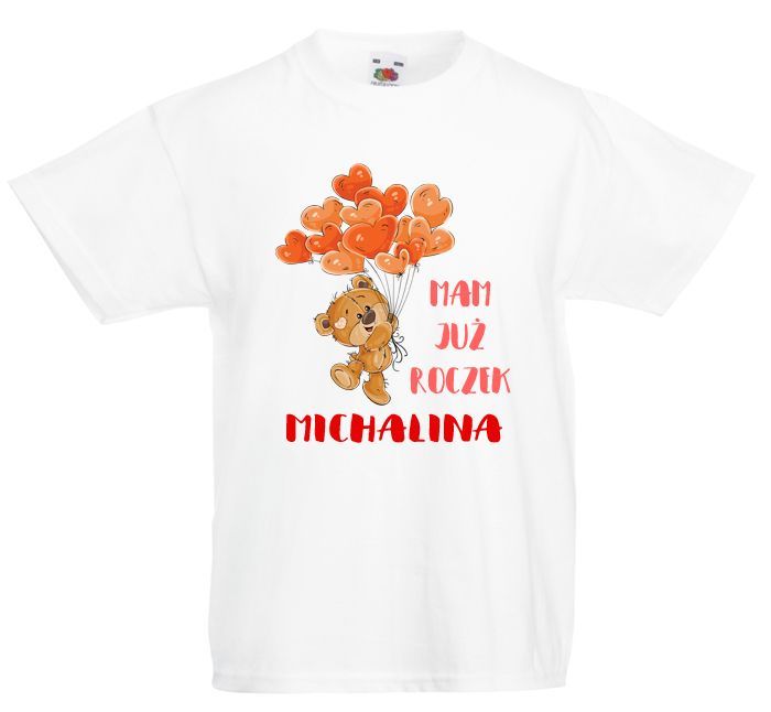 Koszulka na roczek z imieniem i misiem z okazji pierwszych urodzin dziecka.