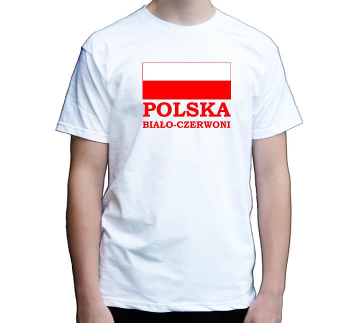 Koszulka męska Polska biało czerwoni jest przeznaczona dla kibiców i na dzień niepodległości. Biała koszulka z czerwonym napisem Polska biało-czerwoni sprawdzi się przy różnych okolicznościach.