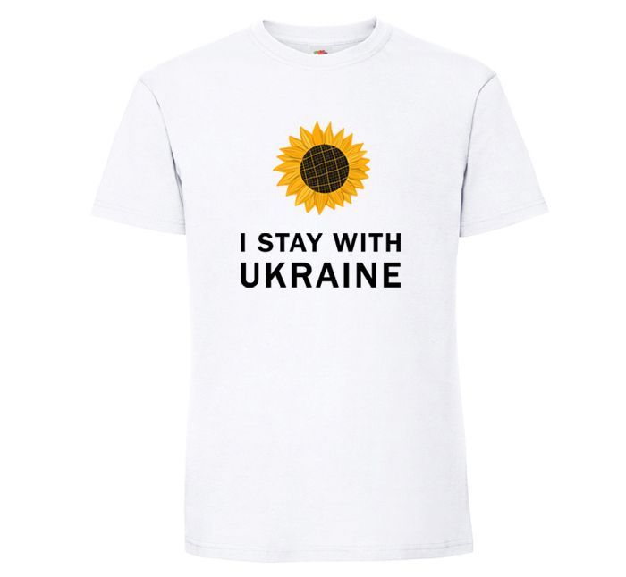 Koszulka męska I stay with Ukraine pokazująca wsparcie Polaków dla Ukrainy.