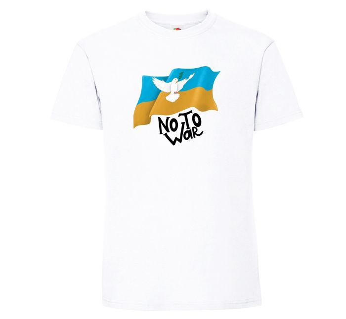 Koszulka z flagą Ukrainy No to war pokazująca wsparcie Polaków dla Ukrainy.