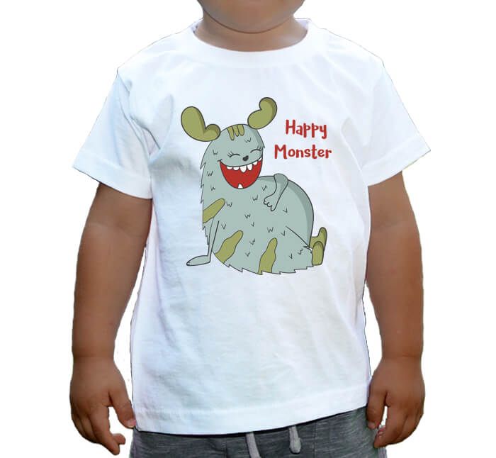 Koszulka dziecięca Happy Monster z kolekcji Little Monsters z roześmianym Monsterkiem. Rozbawiony Stworek, aż trzyma się za brzuszek, taki jest wesoły i szczęśliwy. Czy tak wygląda Twoje dziecko, gdy śmieje się do rozpuku?