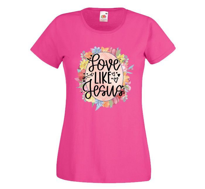 Koszulka Love like Jezus. Jeśli najważniejszym przykazaniem jest kochać, miłuj jak Jezus bezgranicznie, miłosiernie, wbaczająco w oczekiwaniu z otwartymi ramionami.