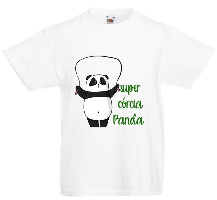 Koszulka dziecięca super córcia Panda. Pandy są bardzo lubiane przez dzieci i dorosłych. Córcia Panda skacze na skakance.