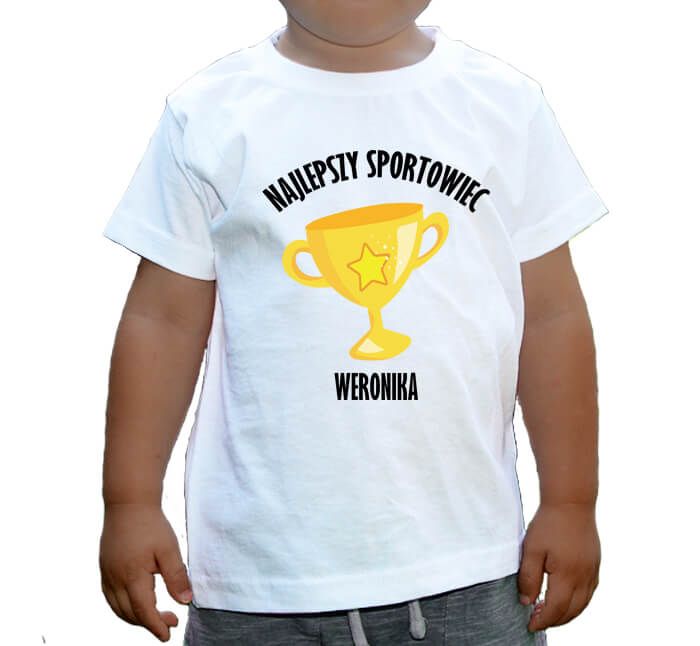 Koszulka z imieniem Najlepszy Sportowiec dla wyjątkowego dziecka. Dla zdobywcy pierwszego miejsca lub dla osoby o największym harcie ducha. Niezawsze zdobywczyni pierszego miejsca jest najtwardszym zawodnikiem. Oprócz wytrenowania czasami potrzeba jednak trochę szczęścia.